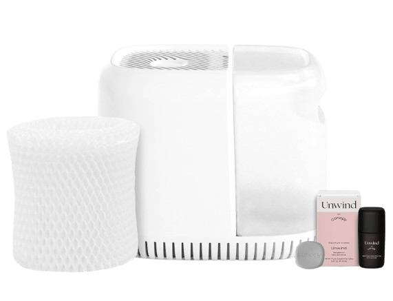 Canopy Bedside Humidifier - helps you breathe better alleviating symptoms of allergies, flu, cold and dry skin. plus aroma therapy for deep relaxation and a filter to keep mold out! - $110